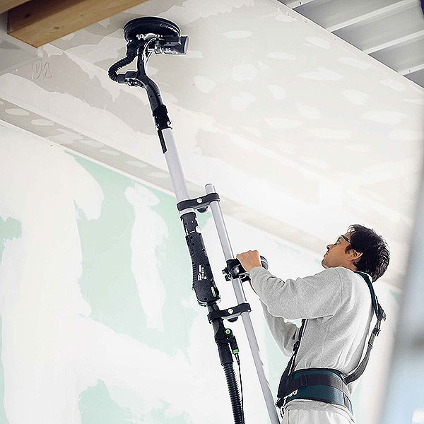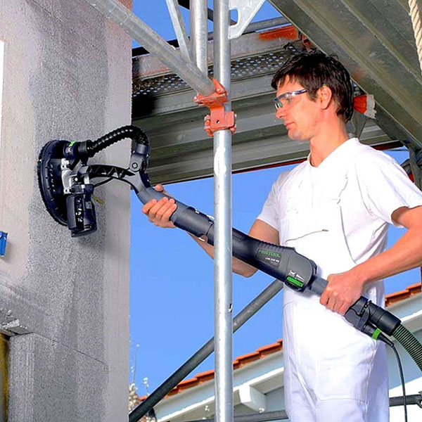 Dünyanın en iyi markası alman Festool'dan gerçek profesyonel alçı zımpara makinası. Sadece Almanya'da üretilir. Dayanıklılığı en belirgin farkıdır. Eklemli oynar zımpara başlığı sayesinde kullanıcı iskele kurmaksızın tavan zımparalayabilir. Festool firmasına ait özel kafa tasarımı sayesinde köşeler için ekstra aparat gerekmeden köşelerde muhteşem zımparalama kabiliyeti. 2 kademeli teleskopik tutamağı sayesinde farklı alanlarda kullanım kolaylığı. (110cm-160 cm) uzun ömürlü ve güçlü motor. (diğer makinalardan farklı dişli tahrik sistemi) makinamıza profesyonel tip emiş ünitesi monte edilerek kapalı mekânlarda tozsuz çalışma imkanı.